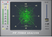 PSP StereoAnalyser is used for measuring and estimating the correctness of the stereo signal. Apart from mean and peak measurement of L R or M S signal levels it allows for oscilloscope observation of stereo sound which reveals phase errors and lack of channel balance.