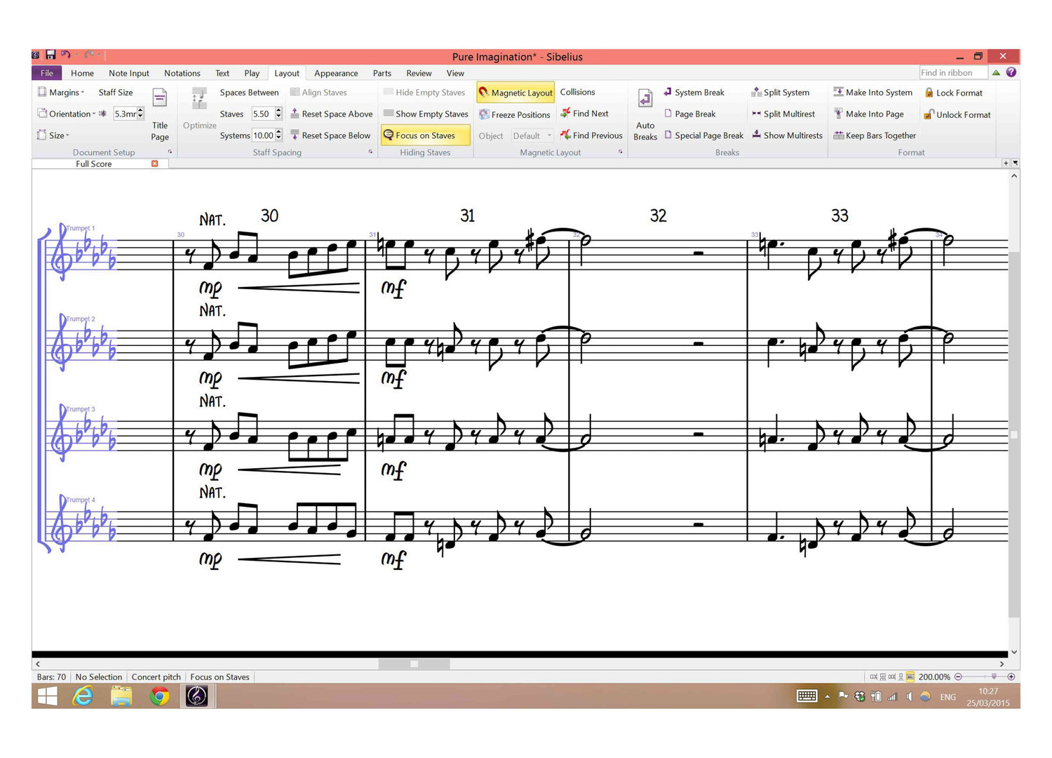 - Sibelius peut créer des parties instrumentales individuelles lorsque vous créez votre partition et les mettra automatiquement à jour en conséquence chaque fois que vous apportez des modifications à la partition. Pour les copistes, cela élimine le besoin d'extraire des parties ou d'apporter des modifications destructrices lors de la préparation de la musique pour différentes parties. De plus, les parties peuvent être modifiées sans affecter la partition complète.