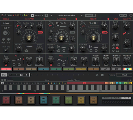 Drum sound randomizers with profiles and the MakeKit button will keep on surprising you with new drum sounds and kits. Simple patterns turn into livid tracks with the Auto Fill feature, which inserts fills and parameter changes at certain song positions. The revolutionary Remix control creates crazy fills and covers lots of groove and fun.