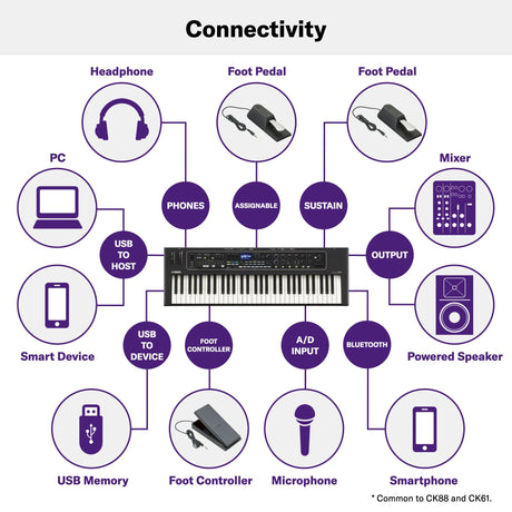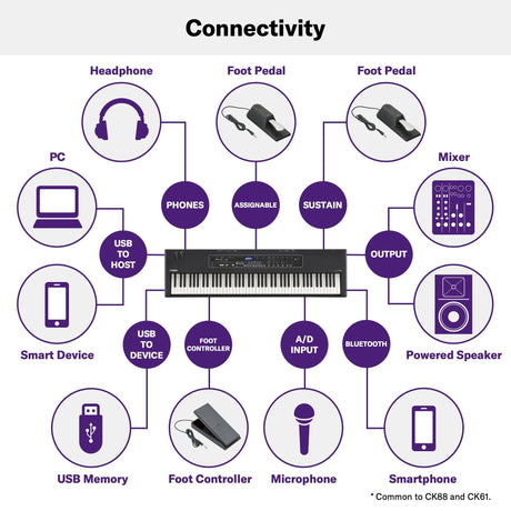 Stage pianos are designed for live performance and travel. They are easy to transport and often have a range of built-in sounds and effects that can be used on stage. Stage pianos don't usually have built-in speakers, as most performers will use their own audio equipment to amplify the sound. In fact, stage pianos are often so slim and lightweight that they can be carried in a regular backpack. They are also known for their sturdy construction and durability, making them ideal for touring.