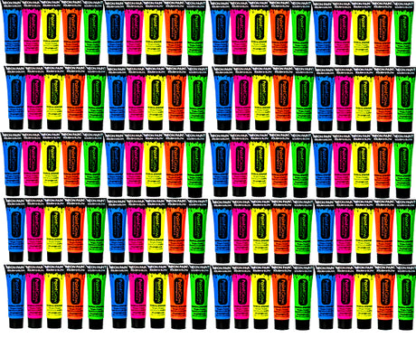 Here you will find our selection of UV paint, both for walls, furniture, clothes but also for yourself, so you can light up for uv party. UV paint is a fluorescent paint that lights up in bright colors when you are in rooms with a UV lamp, and is therefore often used for e.g. neon party and theater. Everyone knows the paint with the wild neon colors when a bunch of high school students are on their way to a UV rave party / neon party / or whatever it's called. That's why many call UV paint "rave paint"