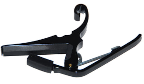Un trigger-capo est un type spécial de capo utilisé pour ajuster la tension des cordes de la guitare et changer la tonalité sans avoir à déplacer les doigts. Il se distingue des autres types de capos par son mécanisme - il a un déclencheur à ressort qui permet de le mettre ou de l'enlever facilement et rapidement de la guitare.