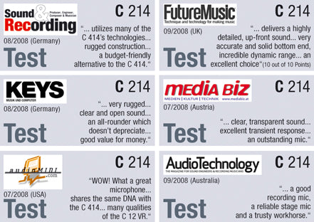 C-214 peut également supporter une pression acoustique élevée (156 dB SPL avec le commutateur att. activé) et est donc à la fois un choix répandu pour les voix, mais aussi un bon choix pour des applications telles que les amplificateurs de guitare ou les "overheads" (au-dessus des batteries / pianos, etc.).