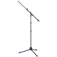 Microphone stand with telescopic boom arm.
