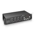 Les sections maître et zone ont chacune leur propre EQ, sorties XLR équilibrées et RCA non équilibrées : la sortie maître via des connecteurs à bornes et la sortie de zone utilisant un commutateur de somme mono, et un filtre passe-haut de 100 Hz. L'indication de niveau stéréo peut être réglée sur maître ou zone, et le niveau de sortie maximum peut être pré-réglé pour les deux à l'arrière du mélangeur. En plus d'une connexion casque réglable pour la pré-écoute, le ZONE 423 dispose également d'une sortie d'enregistrement.