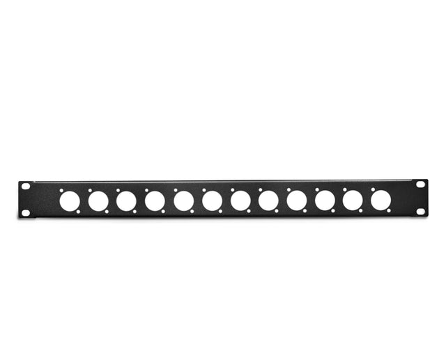 - Panneau rack 19" avec 12 trous de type D pour le montage de connecteurs châssis.