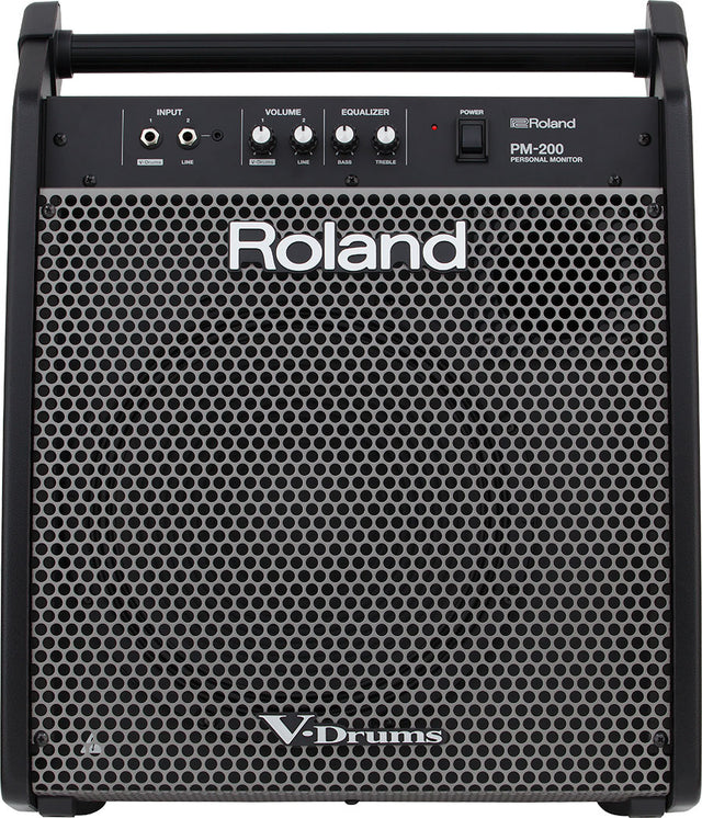 - Le PM-200 est équipé de 180 watts et d'un système de haut-parleurs à pleine gamme spécialement conçu, ainsi que d'un boîtier robuste, optimisé pour reproduire le son et la sensation de jeu des V-Drums de Roland.