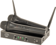 - Système UHF à 2 canaux composé de 2 émetteurs de microphone portables et 1 récepteur.