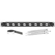 - Panneau de rack incliné de 19" avec 8 découpes pour prises de type D - avec rail de soulagement de tension à l'arrière.