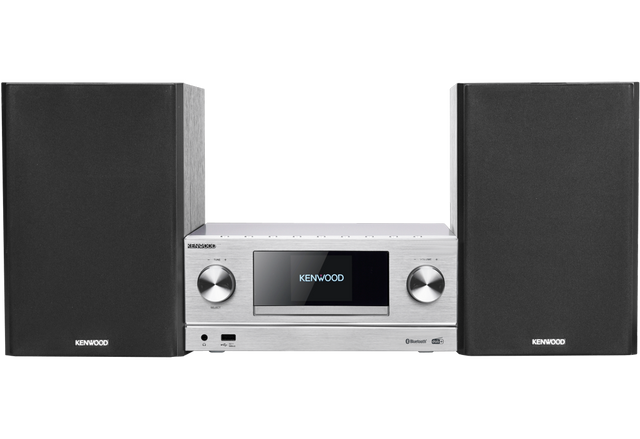 - Smart mini stereo from Kenwood in minimalist silver design.