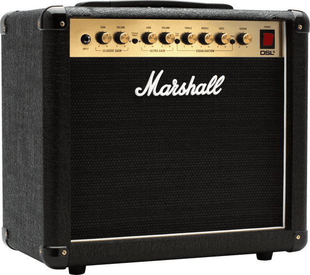 Marshall's DSL5 combo is a versatile and powerful amp that gives you wide scope to experiment in all genres and sound universes. The amp comes with a range of effects such as reverb, tone shift, deep and FX loop features, giving the guitar player room to express themselves creatively. The amp includes a 10'' Celestion Ten-30 speaker.The 5watt amp's power level can be reduced to 0.5w, making it ideal for the small rehearsal room or at home where you enjoy playing less loudly.