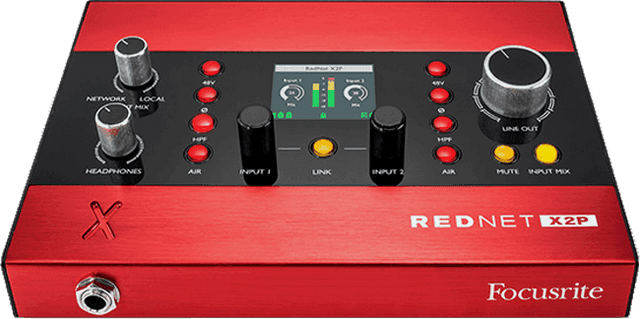 Focusrite RedNet X2P is a high quality audio interface that can be easily connected to your Dante network and used as both a monitor controller and an easily accessible audio interface. On the audio board you get 2 inputs with Red Evolution mic preamps, stereo line outputs for monitors and a powerful headphone output. The X2P is the obvious choice if you want easy access to record with a single musician while connecting to your other professional gear.