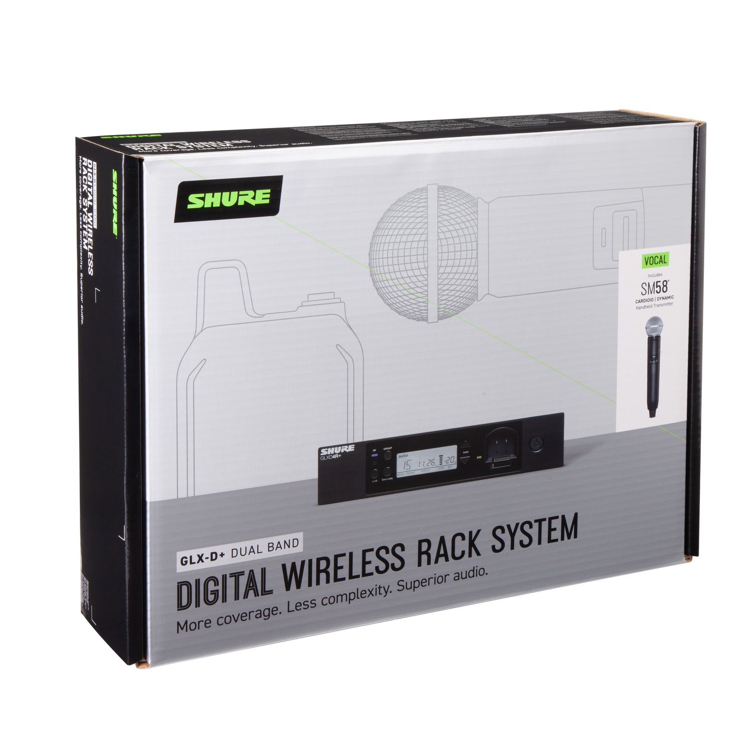 - Digital wireless microphone rack system including the legendary Shure SM58 vocal microphone with built-in transmitter