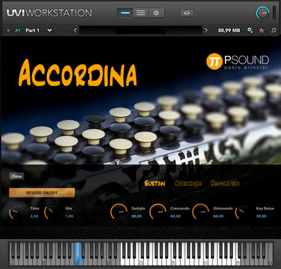 Accordina Accordina est un instrument à anche libre, similaire à l'harmonica. Il emprunte son clavier chromatique (44 notes) à l'accordéon. PSound Accordina a été échantillonné jusqu'à 6 couches et 3 articulations pour plus de 400 échantillons (300 Mo de stockage).