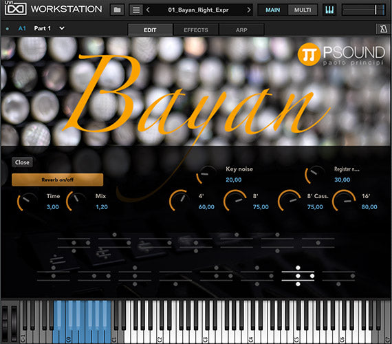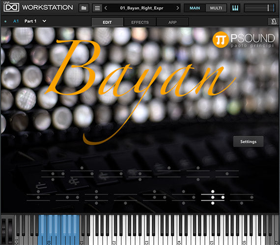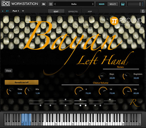 Le bayan est un type d'accordéon à boutons chromatique développé en Russie au début du 20ème siècle. Il est utilisé pour la musique classique et contemporaine. L'instrument échantillonné original est l'incroyable Bugari Bayan Prime. PSound Bayan est l'accordéon virtuel le plus précis disponible.
