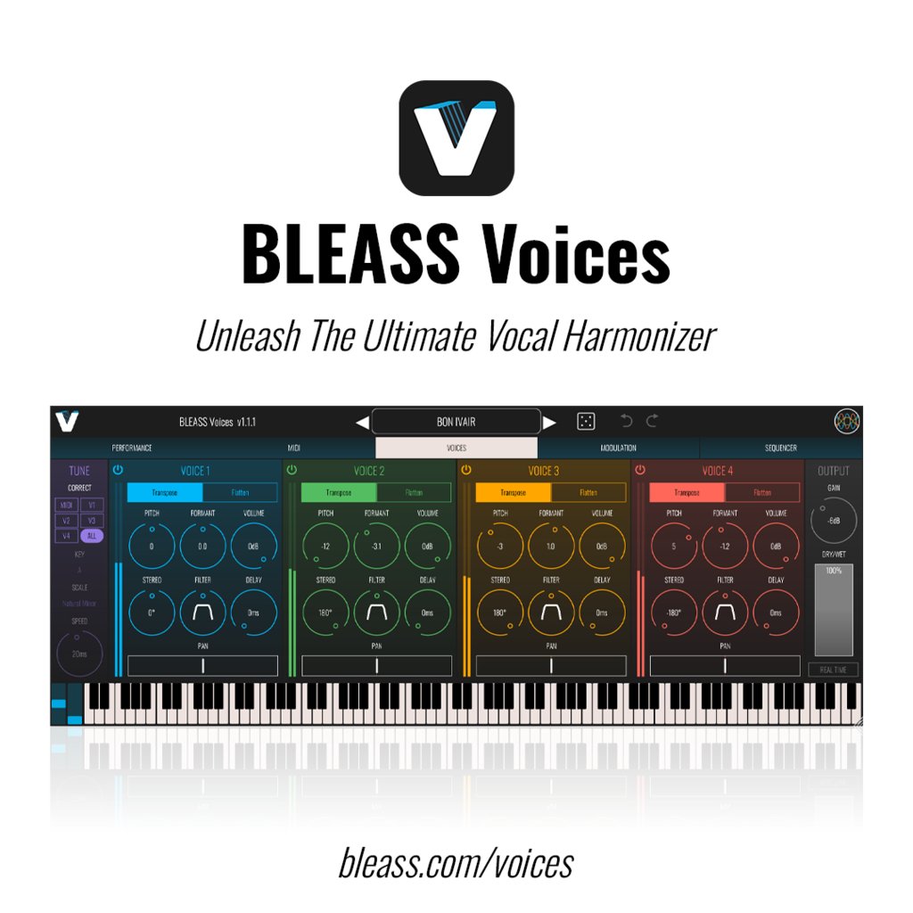 BLEASS Voices est un plugin audio polyvalent pour le pitch, la transformation, le doublage et l'harmonisation des voix et des sources monophoniques. Avec 12 voix pitch-shiftées, chacune offrant un contrôle sur le pitch, le formant, le ton, la largeur et le placement, il redéfinit la créativité vocale.
