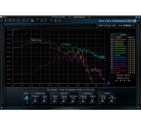 Le FreqAnalyst Multi de Blue Cat est un analyseur de spectre en temps réel unique pour plusieurs pistes : il vous permet de visualiser le contenu spectral de plusieurs pistes audio sur le même écran avec une extrême fluidité et une haute résolution, tant pour le temps que pour la fréquence.