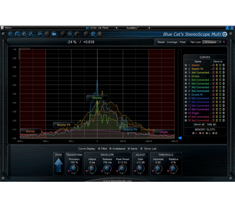 - Multiple tracks real time stereo field analyzer: visualize and compare the stereo image of several audio tracks on the same screen.