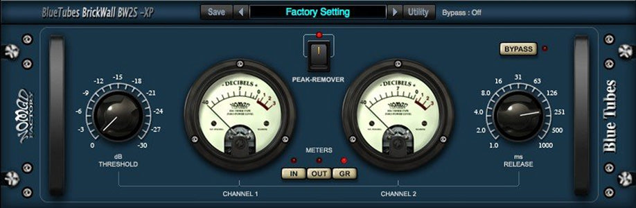 The BT BrickWall BW2S-XP is a simple and elegant brick wall compressor/limiter. Just insert the BT BrickWall BW2S-EX on your mono or stereo track, and you have a smooth audio track without the unwanted transients.