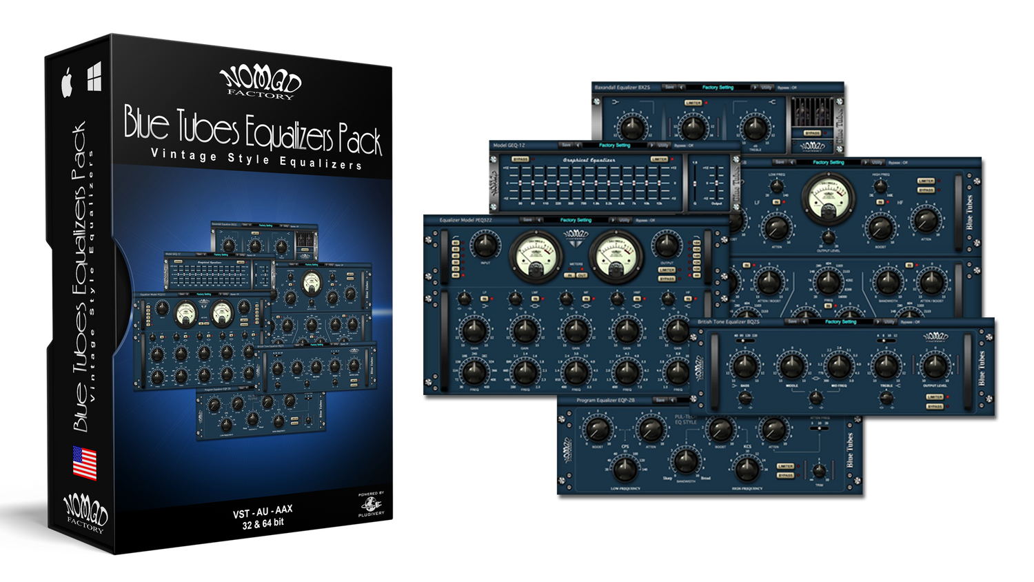 Conçu par des musiciens pour des musiciens, le Blue Equalizers Pack est une collection de 6 plug-ins processeurs, conçue pour améliorer la qualité des enregistrements audio numériques.