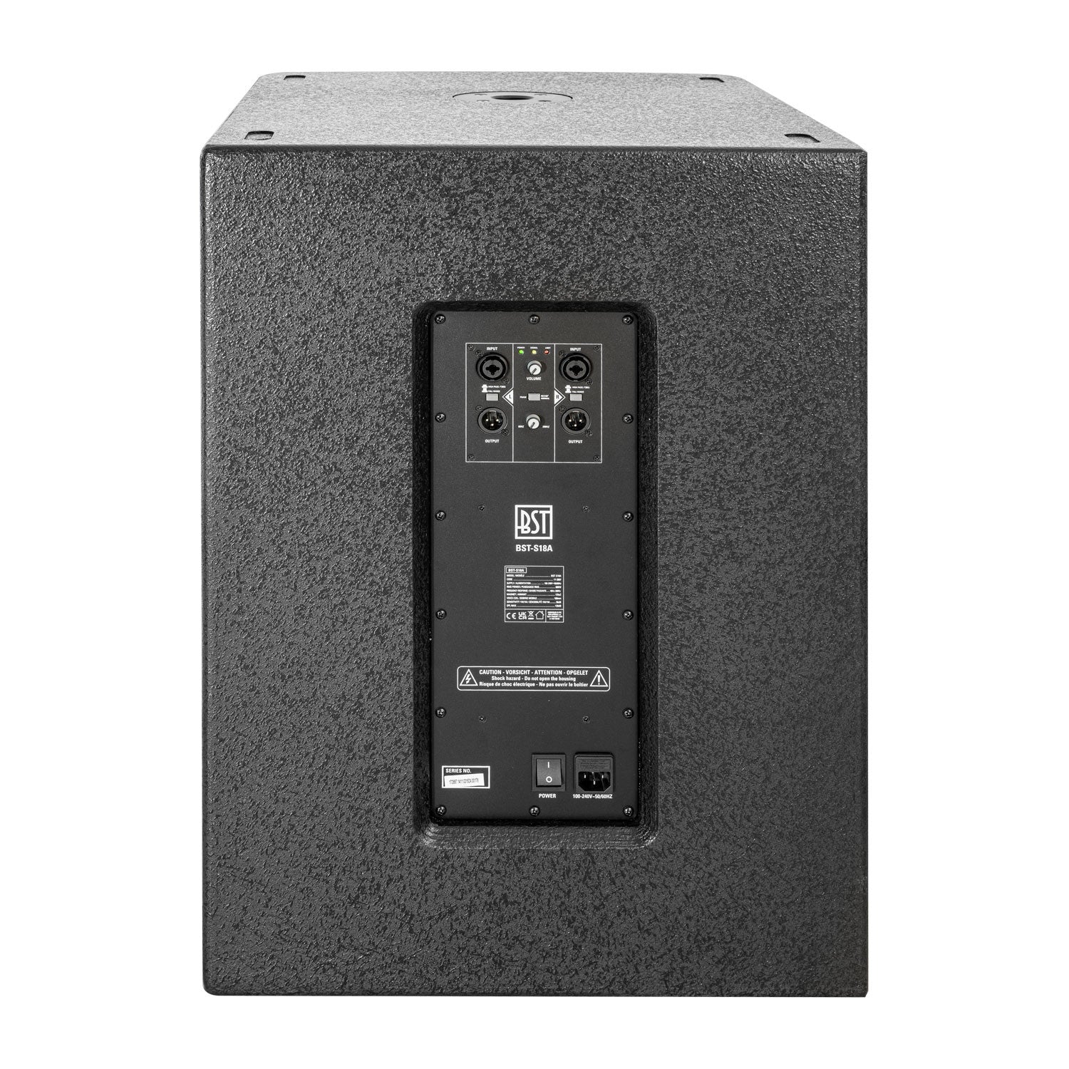 The cabinet construction is made of robust 18 mm multiplex wood and designed to withstand heavy loads and transport. The professional appearance and practical handles make it easy to integrate into mobile or fixed setups. With the BST-S18A, you get a reliable, versatile, and powerful subwoofer that delivers a solid bass experience – every time.