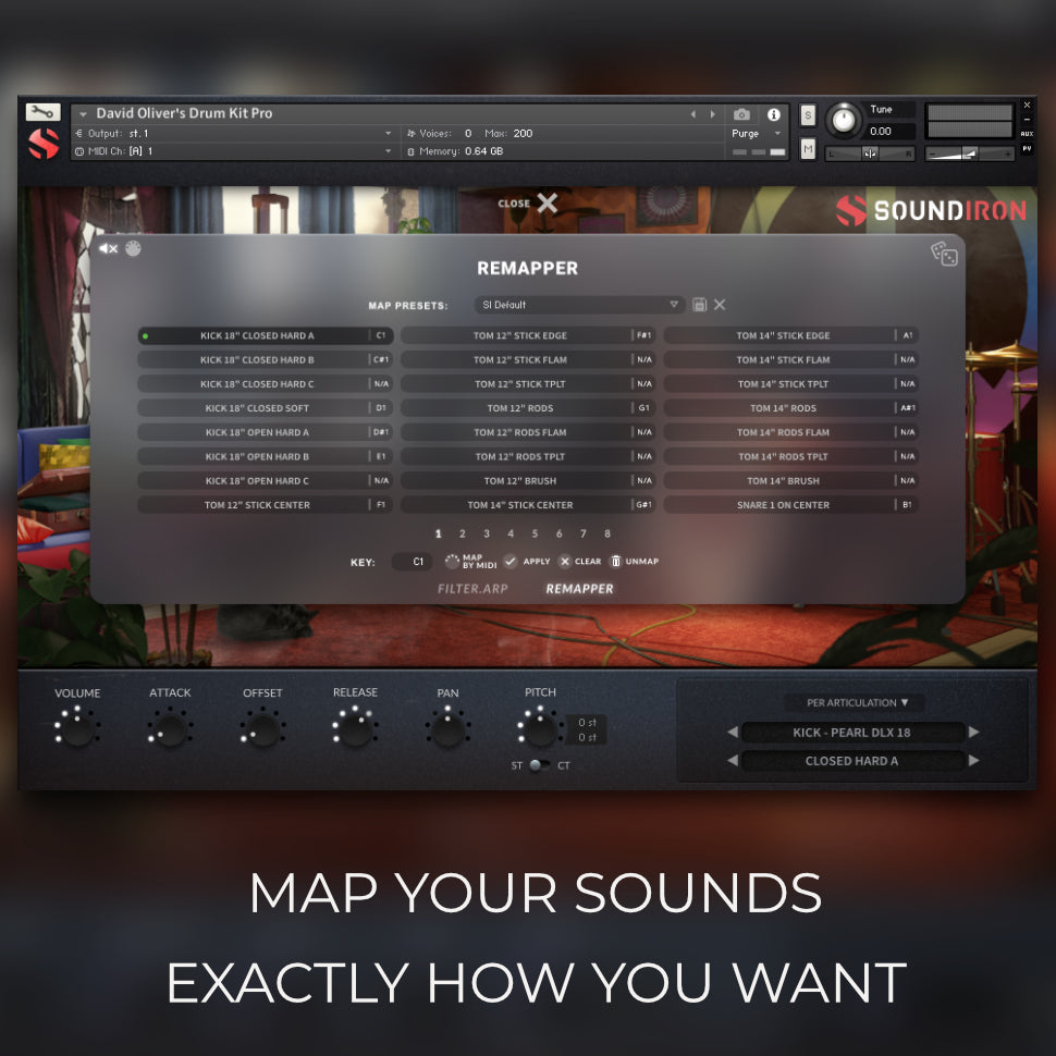 Le kit de batterie de David Oliver est un ensemble de batterie Pearl DLX rouge des années 1980, profondément samplé, sélectionné et interprété par l'instrumentaliste britannique et compositeur de médias David Oliver. La Pearl DLX a été initialement jouée et approuvée par le légendaire batteur de jazz Art Blakey, bien qu'elle ait un son très polyvalent adapté à plusieurs genres musicaux. Nous l'avons mise à l'épreuve en l'échantillonnant avec différents types de baguettes pour un maximum de techniques de batterie expressives, allant de l'ultra fort à l'ultra doux. La grosse caisse compacte de 18 pouces est super percutante avec un tom de rack de 12 pouces et un tom de sol de 14 pouces. Nous avons enregistré ce kit de manière extensive aux Whitehouse Studios au Royaume-Uni.