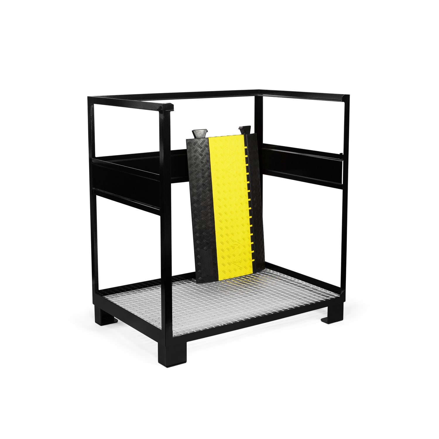 Den robuste kasse består af en slank og stabil svejset stålkonstruktion i standard europalle-dimensioner. Bunden er udstyret med et galvaniseret stålgitter, som gør det nemt at rengøre kabelbeskyttere i kassen.