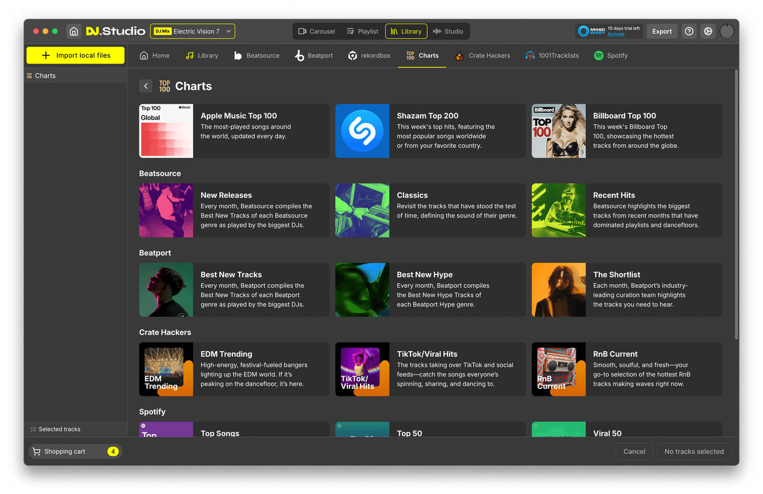 - Essayez des morceaux en ligne de Beatport ou Beatsource et achetez-les lors de l'exportation de votre mix, avec des aperçus intégrés maintenant directement dans Studio 4.0.