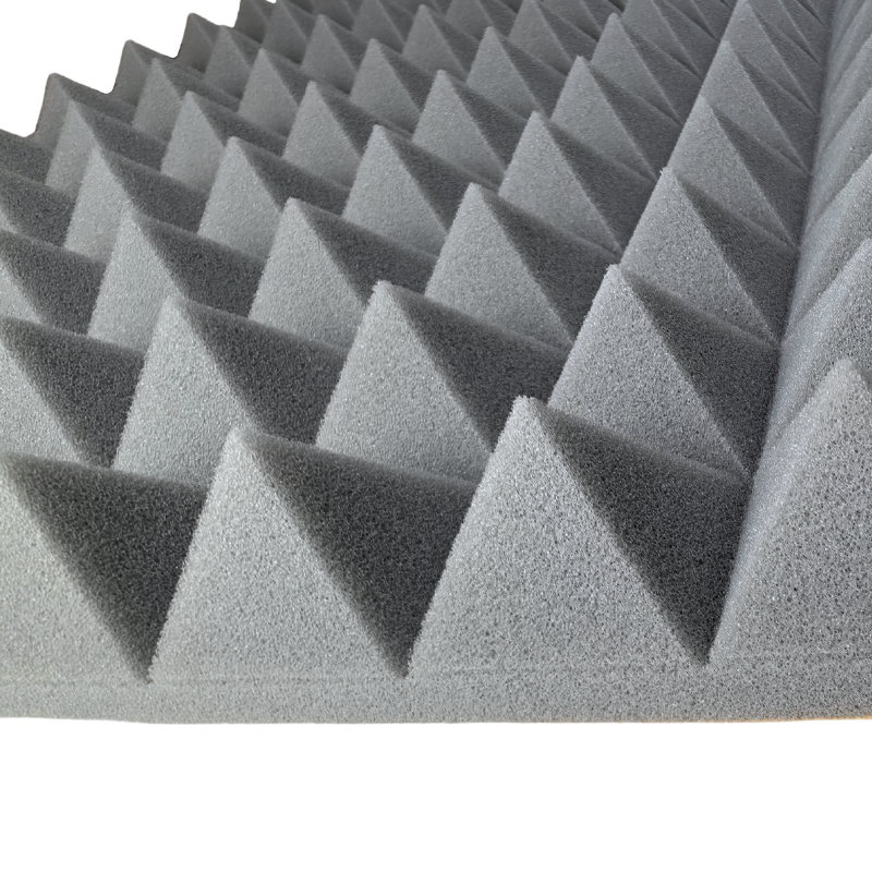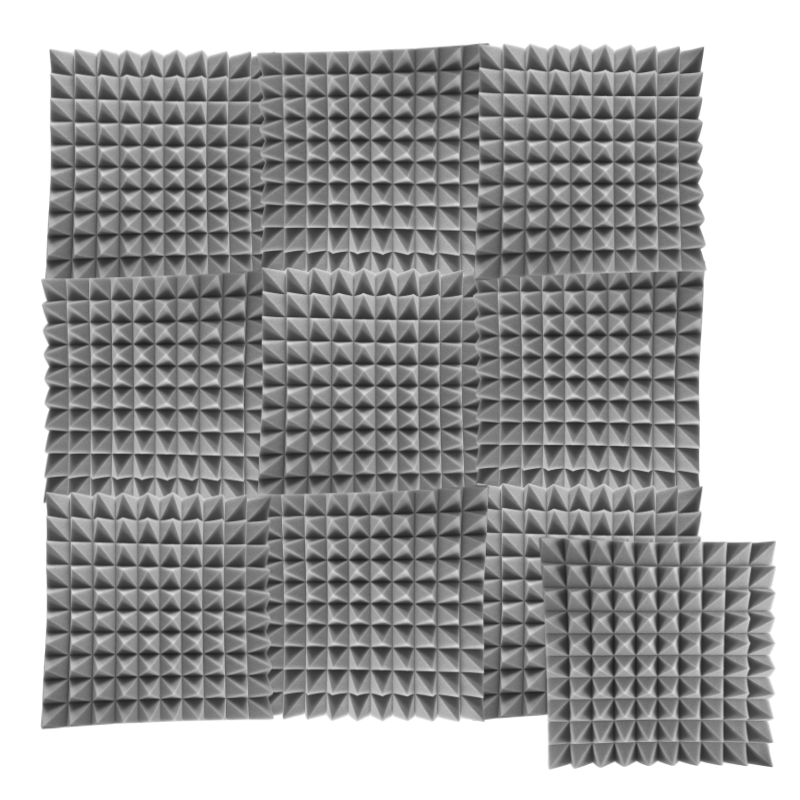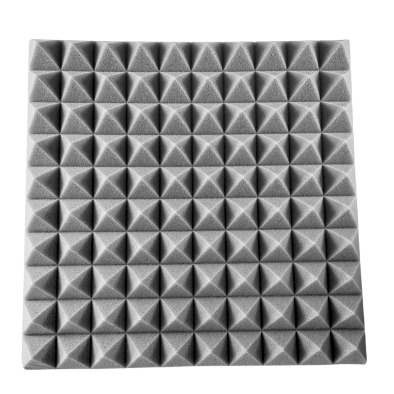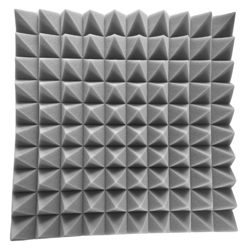 Panelerne er fremstillet i akustikskum med pyramidestruktur, som hjælper med at absorbere lyd og skabe en mere behagelig akustik. Resultatet er klarere tale, bedre optagelser og en mere præcis lytteoplevelse. Det stilrene grå design passer diskret ind i både moderne hjem og professionelle miljøer.