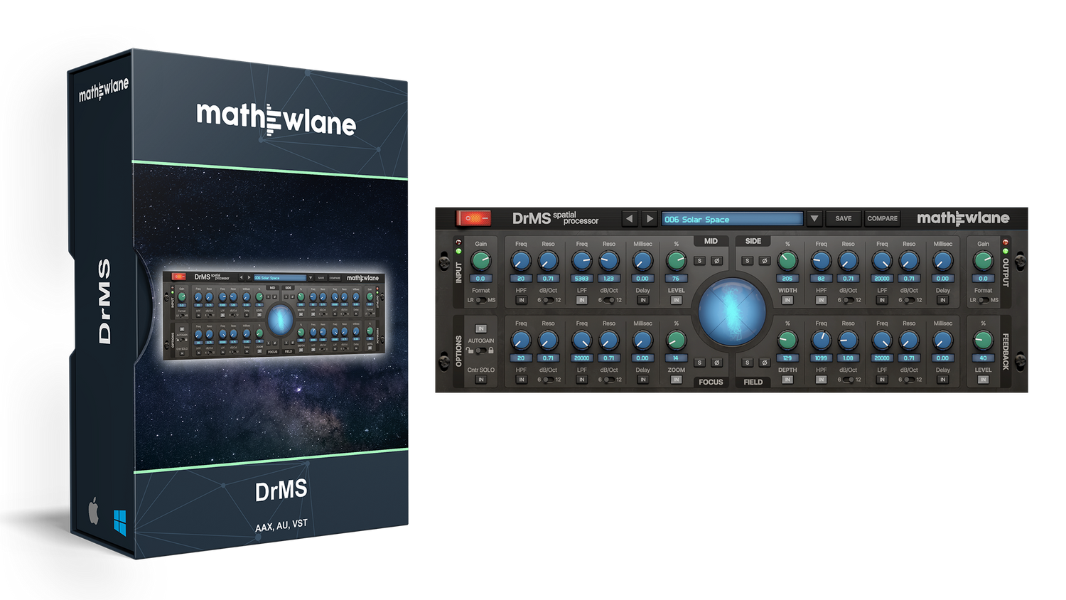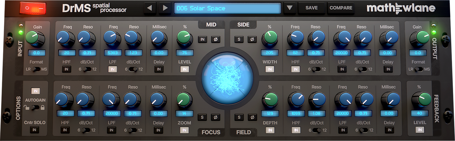 DrMS is a unique spatial processor, available as AAX/AU/VST/VST3 plug-in, with a wide range of applications for mixing, mastering and post production - going from simple MS (Mid-Side) encoding/decoding, over stereo field width and depth enhancement, to fixing mono compatibility issues and more.