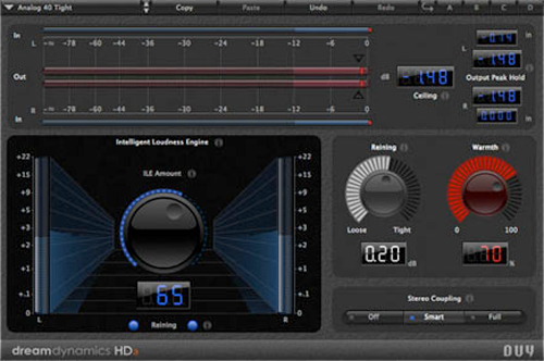 Deux contrôles supplémentaires propriétaires de Duy sont également disponibles : « Reining » et « Warmth ». Ils vous permettent de contrôler respectivement les transitoires et la chaleur analogique de la musique. Dream Dynamics HDa peut facilement remplacer des compresseurs multibandes classiques, un limiteur, des levelers, et offrir un meilleur son avec une grande facilité.
