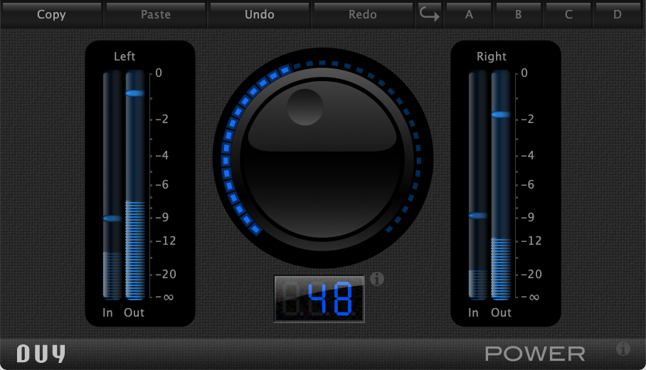 Duy's exclusive "ILE" algorithm is the brain behind this cleverly crafted adaptive spectral dynamics processor. The main benefit of using Power on your on tracks is that you don't have to adjust the usual parameters required in dynamics processors: thresholds, knees, slopes, ratios, attack or release times. It automatically does it all for you!