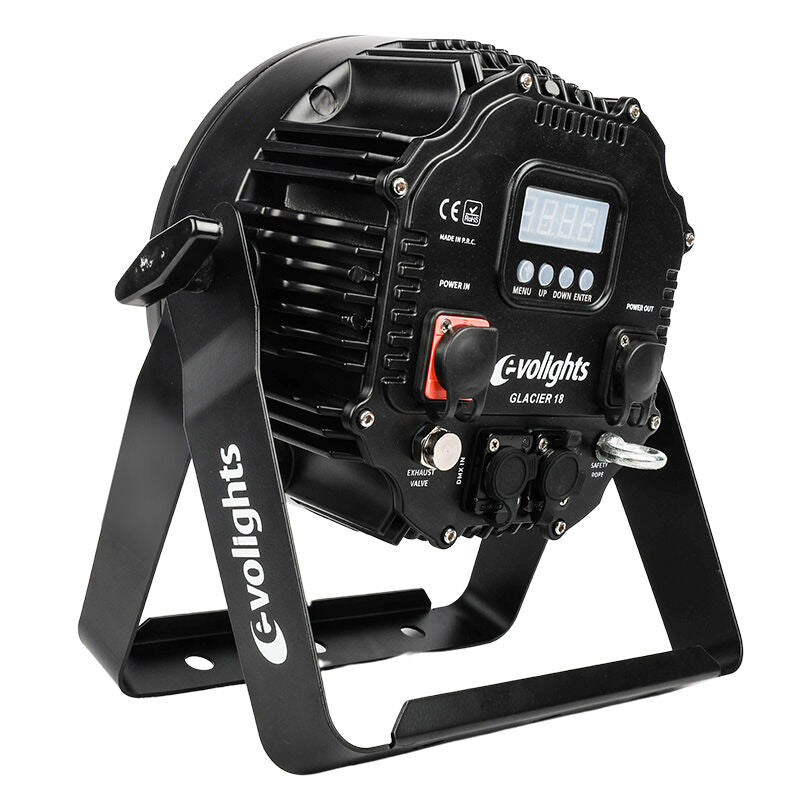 The compact design and the included mounting bracket make installation easy on truss, stands or directly on the floor. Evolights Glacier 18 is therefore a reliable, powerful LED PAR solution for concert stages, events, clubs and outdoor lighting where high brightness and flexible effects are essential.