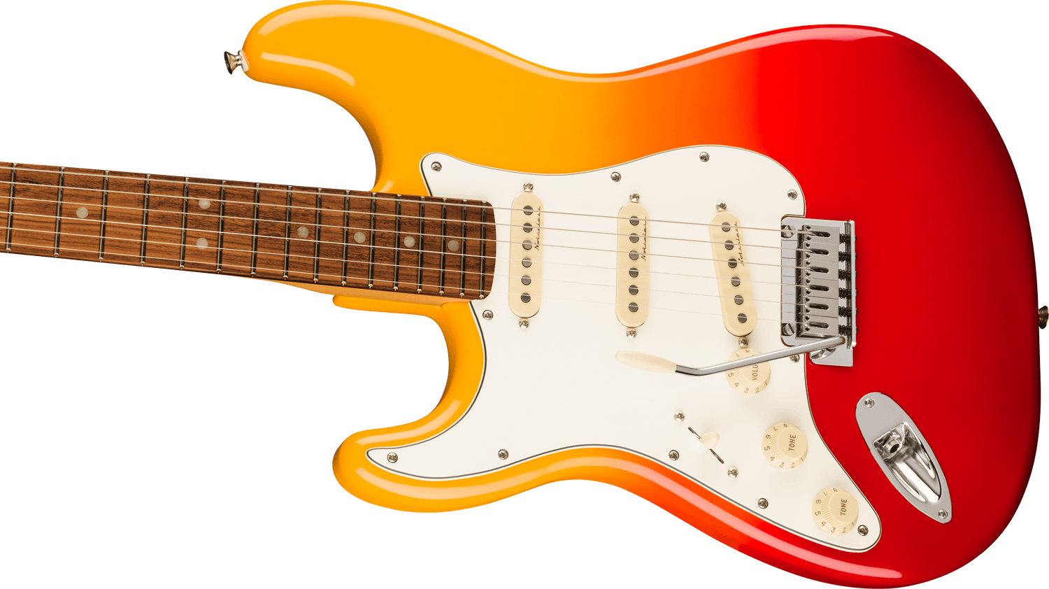 Équipée de trois micros single-coil Player Plus Noiseless, offrant un son Strat clair et dynamique sans ronflette