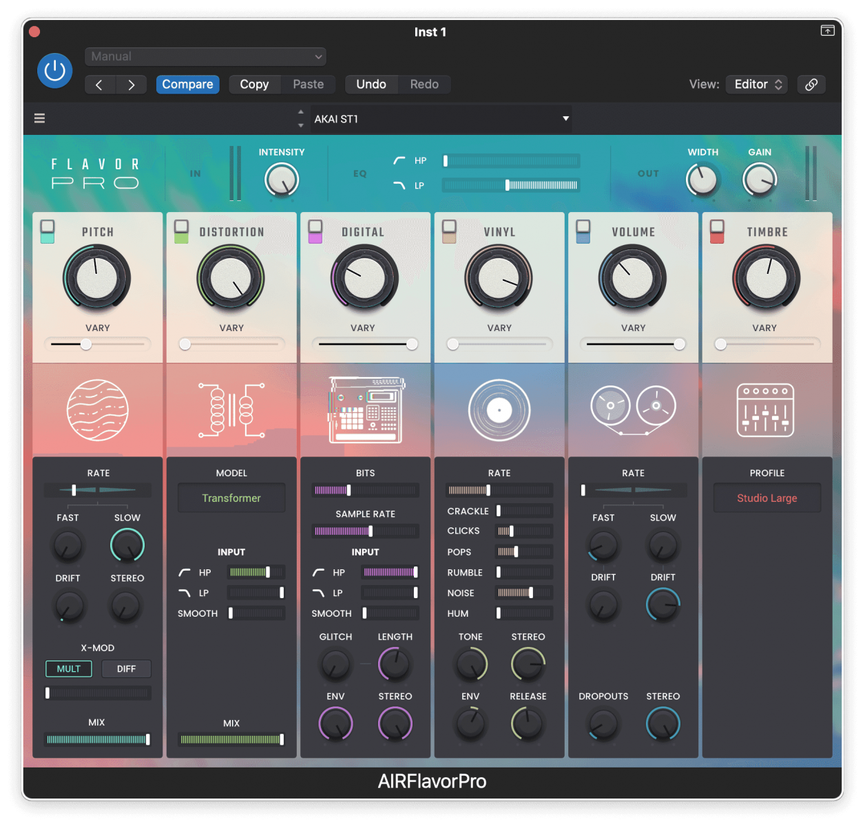 Introducing Flavor Pro, AIR's brand-new flagship lo-fi multi-effects plugin, designed to manipulate samples, melodies, loops, and instruments to the extreme for today’s modern lo-fi sound. Flavor Pro transforms your effects experience into a whole new future/retro landscape.