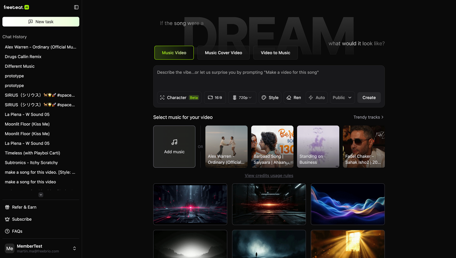 • Intuitive Prompt System: Allows users to describe their vision in plain language (e.g., “David Bowie meets Blade Runner fever dream”) for customized video output. Features