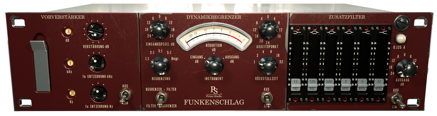 La deuxième partie est un compresseur et limiteur basé sur un appareil analogique vintage des années 1960. Avec des contrôles classiques tels que „Eingangspegel“, „Begrenzung“, „Arbeitspunkt“ et „Rückstellzeit“, vous avez une plage tonale allant d'une compression subtile à une limitation forte du signal.