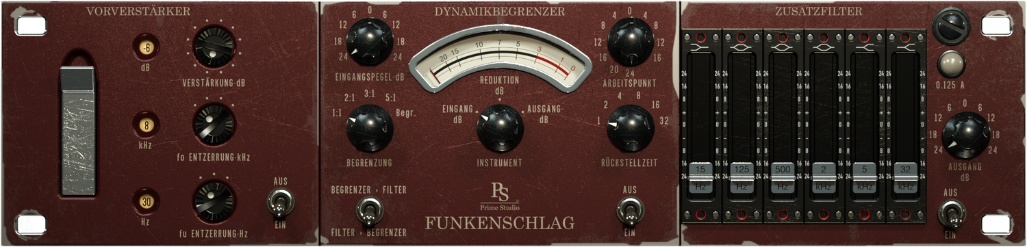 Funkenschlag est un plug-in de chaîne de signal mono / stéréo avec trois outils combinables qui colorent le son de vos pistes.