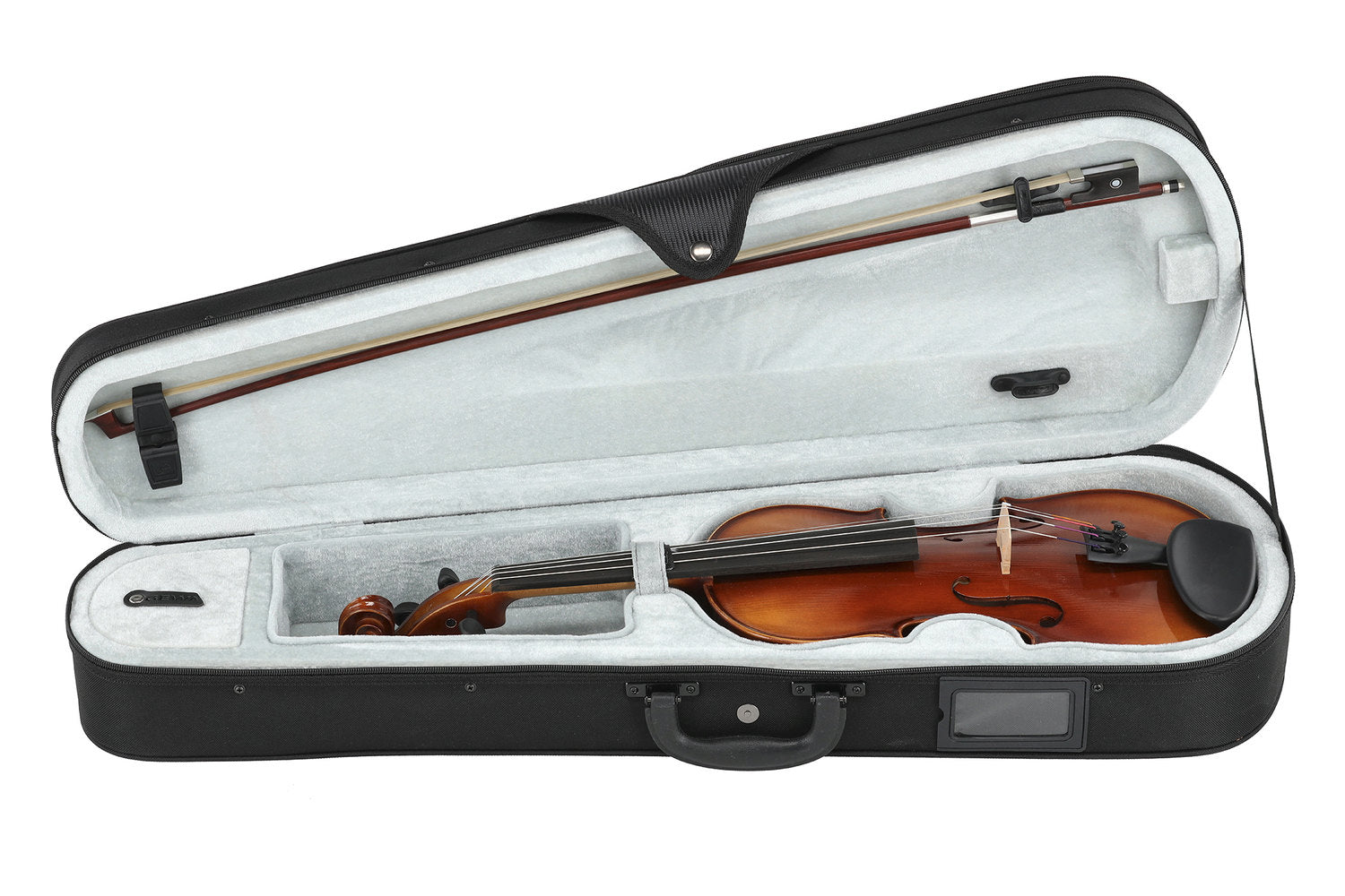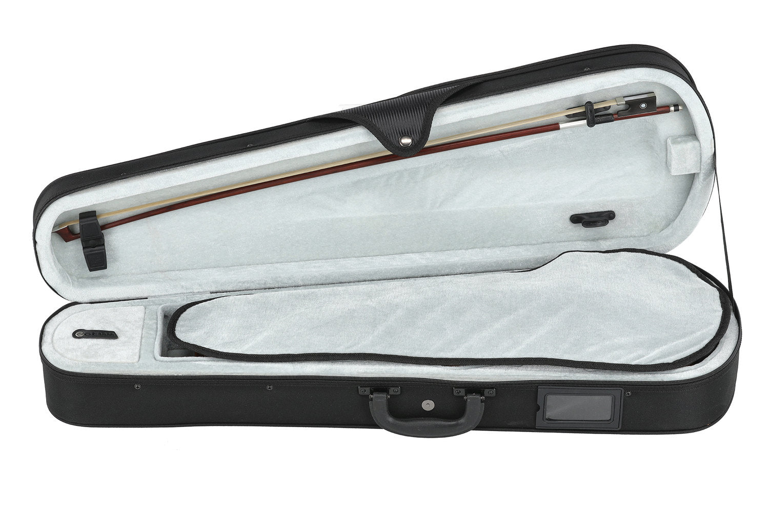 - Violin shaped case with screw-on cover, backpack straps and reflectors