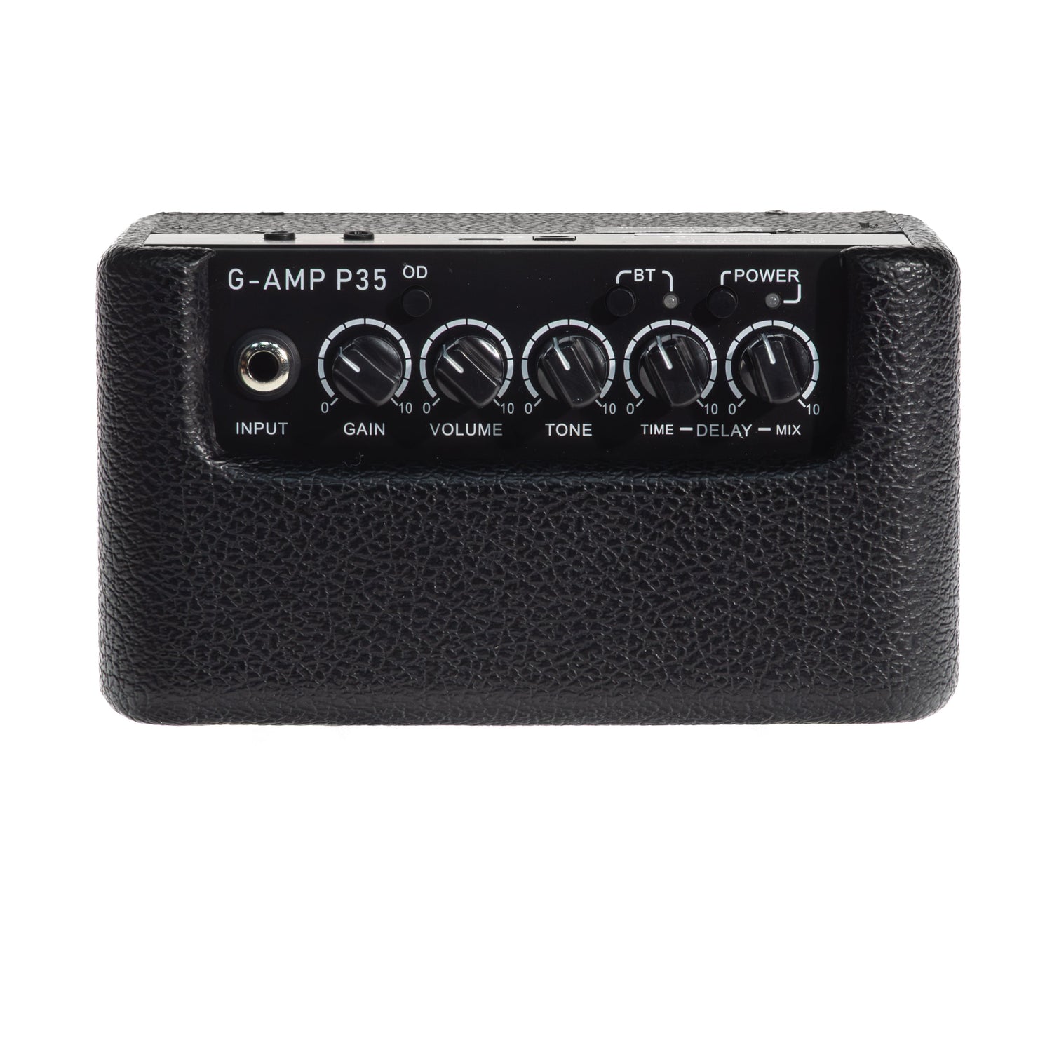 AMP P35 gives you full control over your tone with adjustable settings for gain, volume, tone, delay time, and delay level. The built-in Bluetooth feature allows you to play backing tracks directly from your phone, while the AUX input and headphone output provide flexibility for both practice and quiet training.