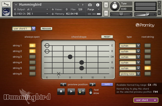 Guitare acoustique virtuelle au son ultra réaliste - Le véritable son de Gibson® 1963 Hummingbird comprend environ 80 Go*, 89 000 échantillons