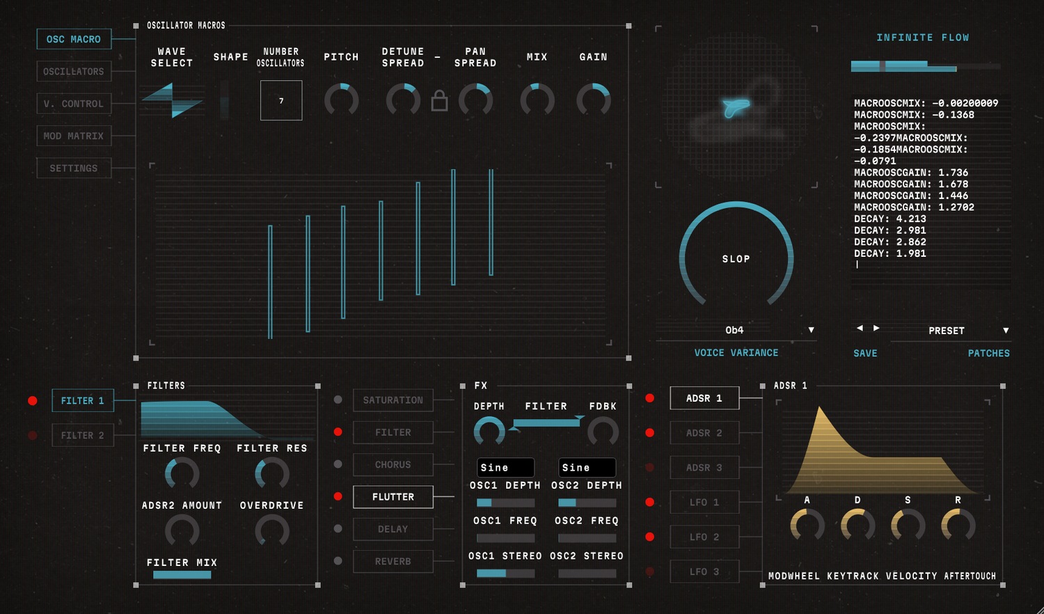 Infinite Flow vous offre la chaleur musicale de 12 synthétiseurs analogiques emblématiques, le tout dans une interface de glisser-déposer ultra-rapide.