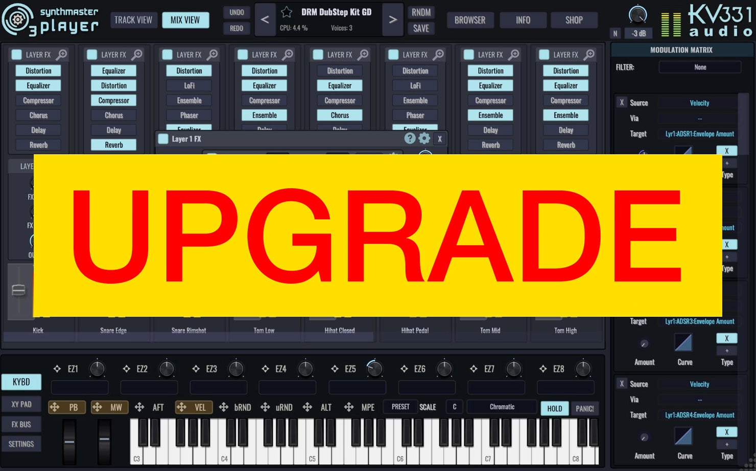 SynthMaster 3 Player est une version simplifiée de SynthMaster 3, conçue pour les utilisateurs qui préfèrent ajuster des presets existants plutôt que de créer des sons à partir de zéro. Il est livré avec tous les presets d'usine des synthétiseurs logiciels SynthMaster One, SynthMaster 2 et SynthMaster 3 de KV331 Audio. Cependant, c'est bien plus qu'un ROMpler : les utilisateurs peuvent modifier les paramètres de voix de couche, de zone, d'effets, d'arpeggiateur et de séquenceur, et charger des presets dans de nouvelles couches pour créer des patches multi-couches ou des kits de batterie.
