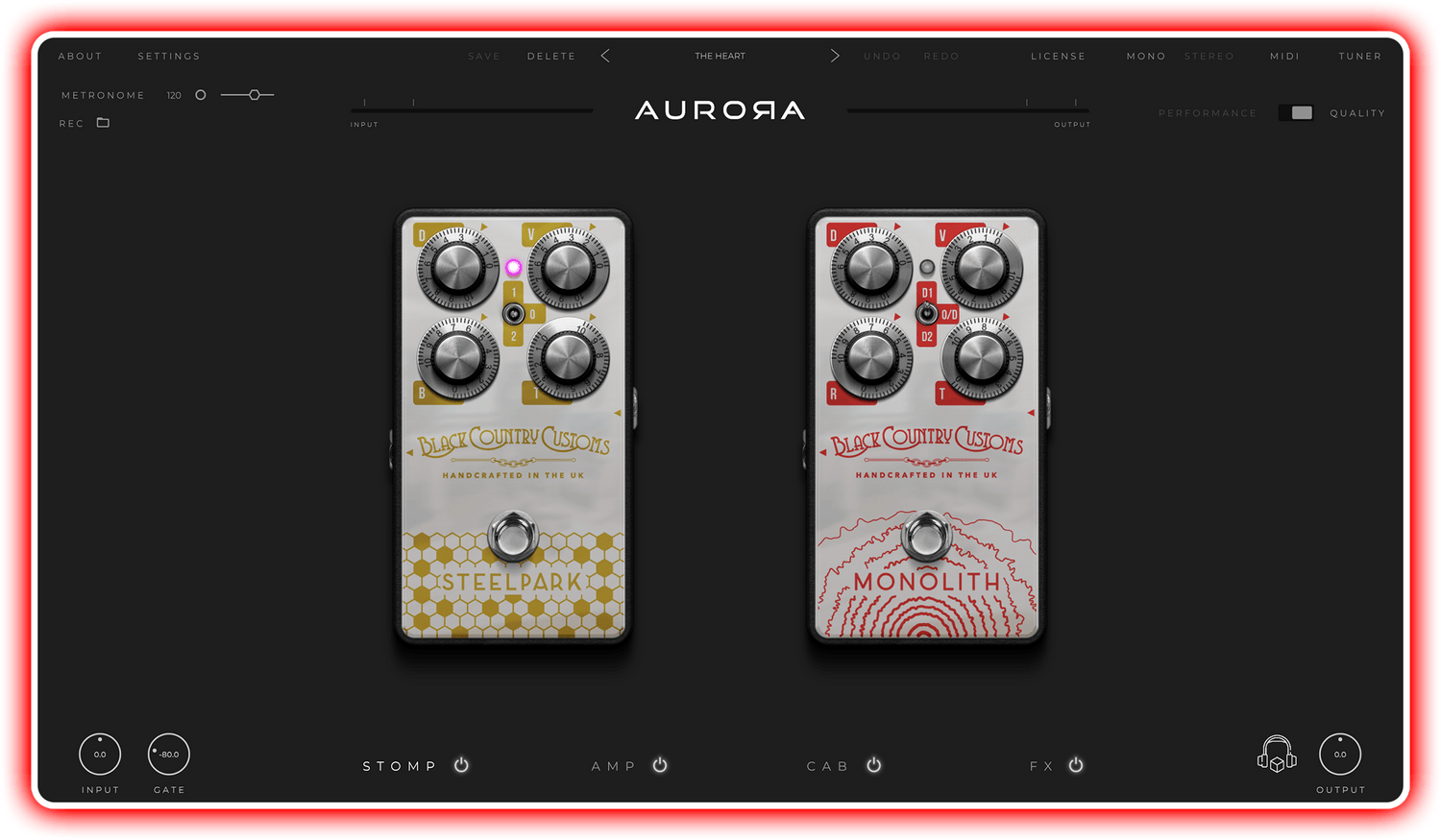 Le BCC-Monolith et le BCC-STEELPARK vous offrent des versions entièrement fonctionnelles de chaque pédale, vous donnant un contrôle total sur le réglage de la bonne quantité de distorsion ou de boost propre.