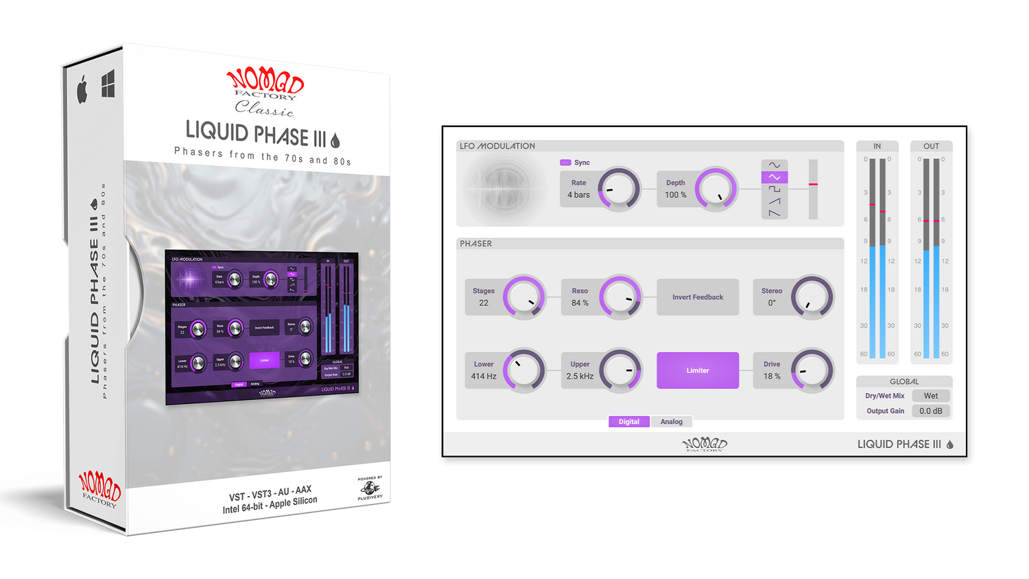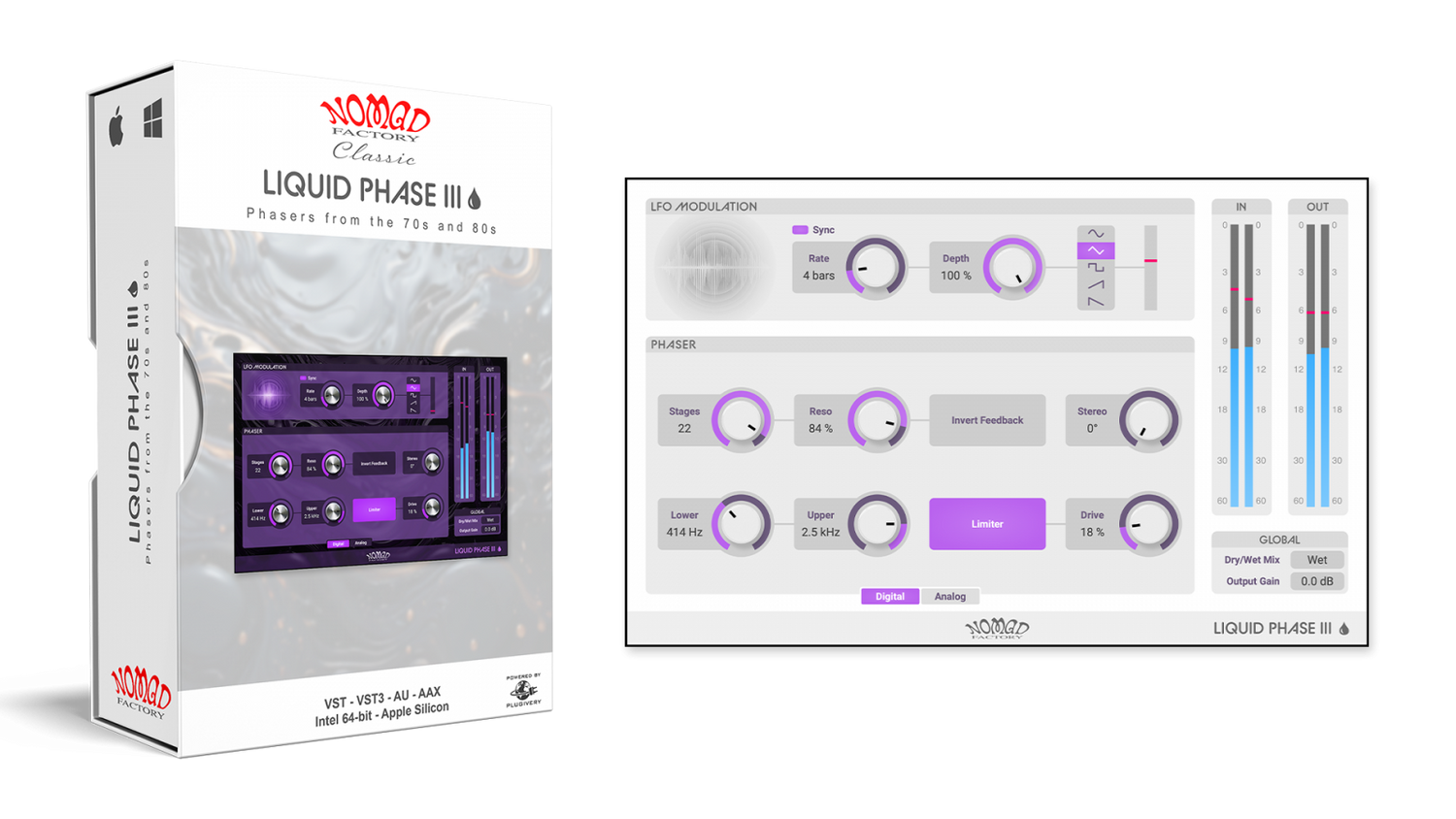 Liquid Phase III’s intuitive design, komplet med stereo spread og en justerbar interface, gør det nemt at indstille alt fra subtil bevægelse til dristige, resonante sweeps. Moderne kompatibilitet med VST3 og Apple Silicon sikrer fejlfri ydeevne i ethvert produktionsmiljø.