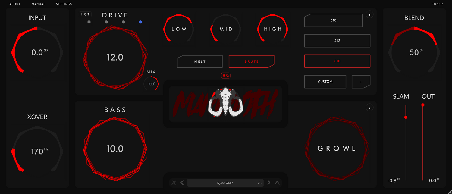Mammoth est un plugin de basse puissant mais intuitif, doté d'un traitement de signal à deux bandes qui inclut un maximiseur de basse, 3 types de drive, une tonalité, des simulations de cabinet et bien plus encore. Nous avons conçu Mammoth avec la simplicité et la flexibilité à l'esprit. Il est fait pour les artistes, les producteurs et les ingénieurs.