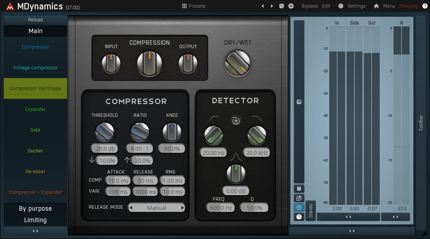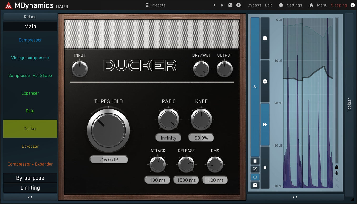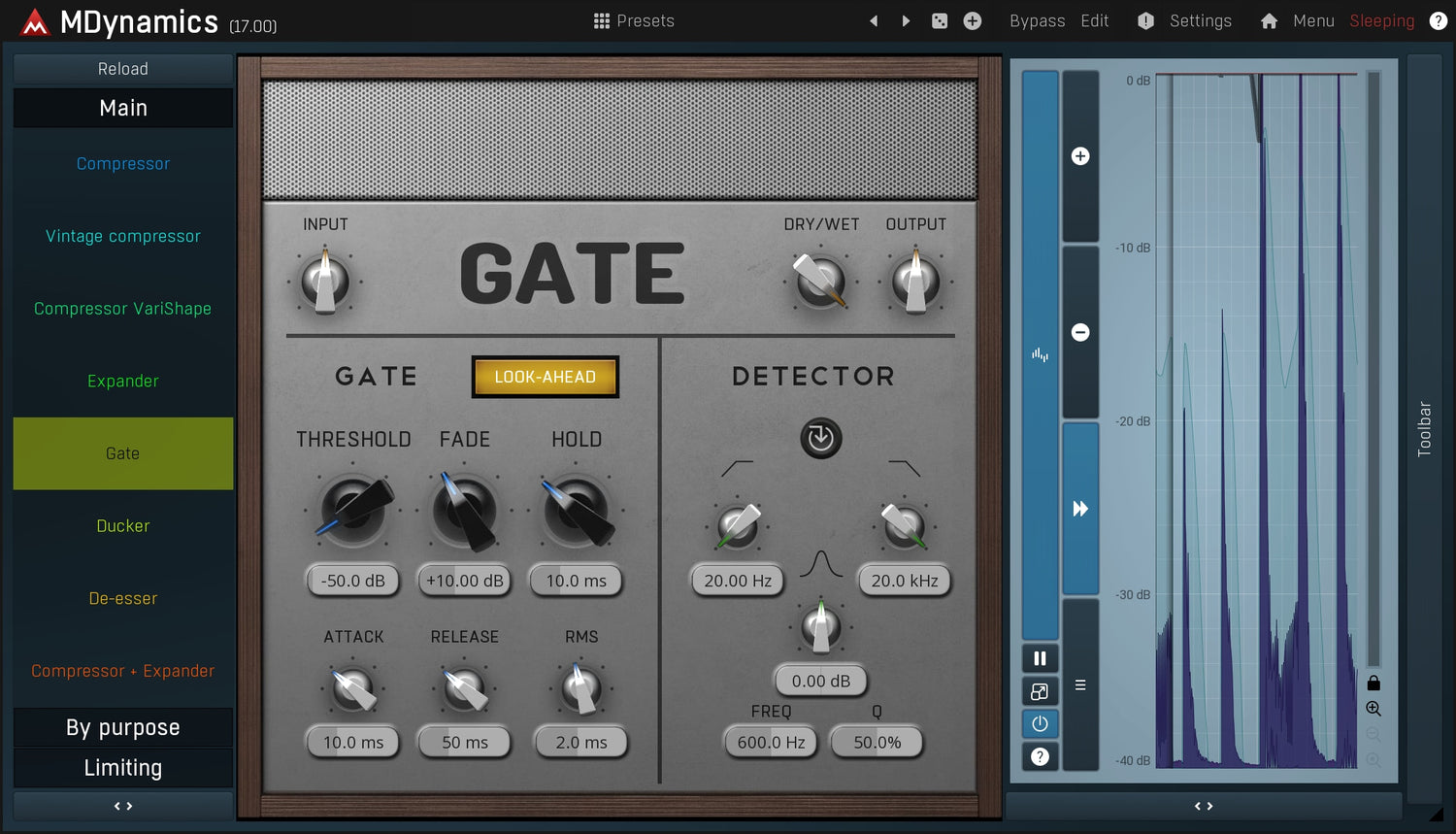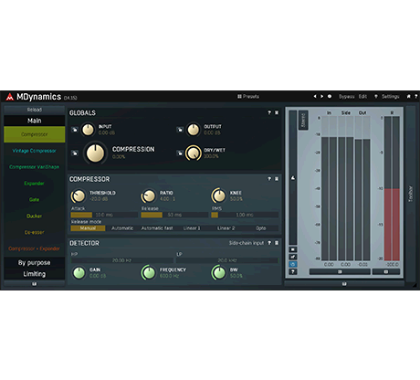 Compresseurs, expanseurs, portes. Outils indispensables dans la production moderne. MDynamics vous offre tout ce que vous pourriez désirer : un son incroyable, une interface facile à utiliser, une polyvalence au-delà de votre imagination.