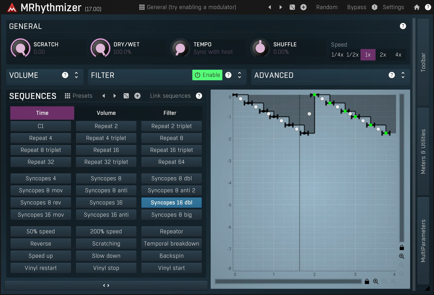 Nous connaissons tous les scratches, mais avec MRhythmizer, vous pouvez gratter facilement en utilisant un simple curseur, ou vous pouvez utiliser des modulateurs et le plugin le fera automatiquement !