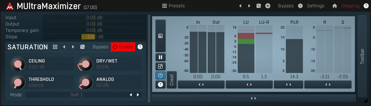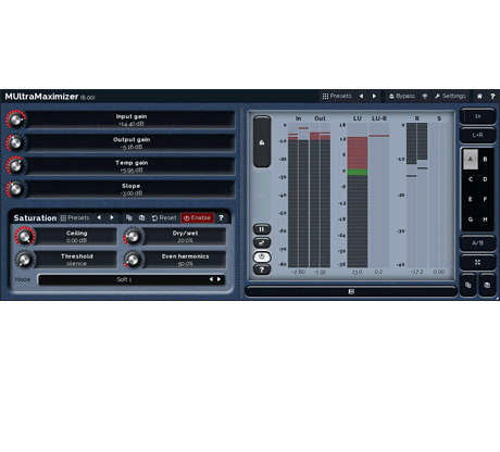 MUltraMaximizer dispose de notre magnifique système de saturation, qui peut ajouter un caractère analogique agréable à votre musique et augmenter le volume.