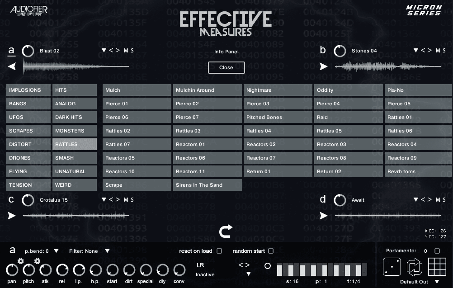 450+ custom cinematic effects Blasts, implosions, engines, analog hits, drones, reverses, tension risers MICRON XY Atmos engine with 4-layer crossfade morphing Ready-to-score cinematic sound palette
